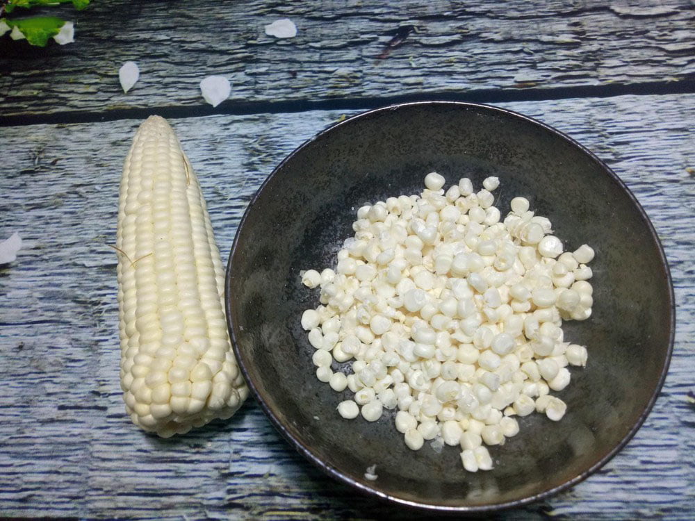 Bước 1: Bạn rửa sạch bắp và tách lấy hạt ra, sau đó rửa lại hạt bắp một lần nữa, để ráo nước.