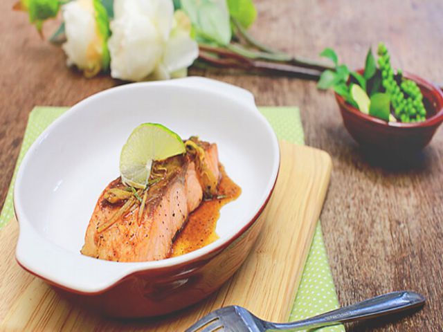 Đây là một món ăn mang đậm nét phương Tây, bạn chỉ cần chuẩn bị 1 miếng cá hồi khoảng 200g cho 1-2 người ăn, kết hợp 1 quả chanh Đà Lạt là được. Các bước thực hành cực kỳ đơn giản: đầu tiên là áp chảo miếng cá hồi, có thể rắc lên trên một chút muối và tiêu. Sau đó, bắt tay vào làm nước sốt tiêu chanh, ớt, xả thơm lừng bằng cách phi thơm chúng lên, cho thêm gia vị mắm muối.